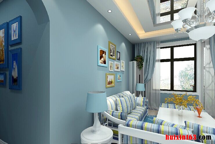地中还风格的装修设计展现的是一种婉约与雅致,在本案例的设计当中,整个居室的空间面积并不是很大,但却显得比较时尚、唯美,例如客厅的装饰布置,采用双层石膏板粘贴吊灯,中间以镜面为装饰,搭配傻瓜一盏个性的吊灯,在视觉感观上给人一种扩大空间面积的感觉,而大量的运用留白处理,在通过浅蓝色的色彩加以点缀,让地中海风格的特点得到淋漓尽致的体现,不管是电视背景墙还是沙发背景墙都有着自己的设计看点,对于沙发背景墙而言,照片墙的设计就是很大的看点,不仅装饰空间环境,而且也是一种艺术的体现,如果在电视柜上适当的添置一些绿植,其效果可能会更加完美。