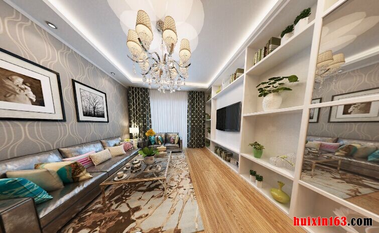 简约风的装修设计一定要表达出一种既简单却又时尚的氛围,本案例是一套98平米的三居室,以简约风的装修风格打造出一个心仪、舒适的居室环境,在客厅的设计当中,采用平顶式的石膏板吊顶,搭配上一盏个性却又新颖水晶吊灯,让空间的美展现得更加活灵活现,实木铺设的地毯,色彩以米黄色为主,与吊顶成一个上下相互呼应之势,个性的电视背景墙设计成收纳柜的形式,摆放一些书籍,添置一些装饰品,起到装扮空间的同时也能增加空间的收纳功能,落地窗的设计搭配上轻质的窗帘,让空间显得更加的明亮透彻,并且还能随时调节空间的采光强度。