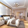 欧式风格输左和欧式的书柜,体现出简约高雅的情调。在顶面上采用两排明亮的射灯实现了客厅和书房的分区。在客厅的位置采用了圆形的土色的地毯,搭配金色框架的玻璃茶几,材质之间的冲突感非常的美妙。