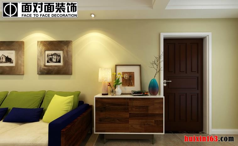 浅鹅黄色墙漆粉饰墙面,淡淡的颜色,好似早春柳树柳花的颜色,给人清新宁静的美好感觉。垭口电视背景墙造型设计,仿砖墙墙纸装饰,形象立体,真实自然,实木电视柜搭配,造型简约却很实用,与背景墙搭配也十分恰当,符合回归自然的设计理念,也营造出了简朴自然且高雅的氛围。纯净的白色凹位造型吊顶设计,看上去清雅简约,铁艺吊灯搭配,给人一种别致清雅、与众不同的舒适感。装饰画装饰着沙发背景墙,丰富了墙面内容,使其看上不会显得单调平素,在柔和的灯光照射下,光影结合,更显立体。仿古砖铺地,质地自然朴实,且自身有点颇多,运用在田园风格的家居中再合适不过,精美花纹地毯过渡,圆形桌面双层茶几搭配,美观实用,朴实自然。浅色简约转角皮质沙发,实木结构框架,纯绿色靠包及多彩的靠枕装饰,倍感清新自然,舒适惬意。